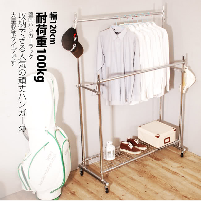 巴哈姆特重型雙桿衣架(W120cm)使室內居家延伸的曬衣空間之外,固定衣櫥以外的收納空間也隨之擴充...寬度達120公分,使得各式衣物容易找到,不用再為了找一件衣服冒得滿頭大汗!
